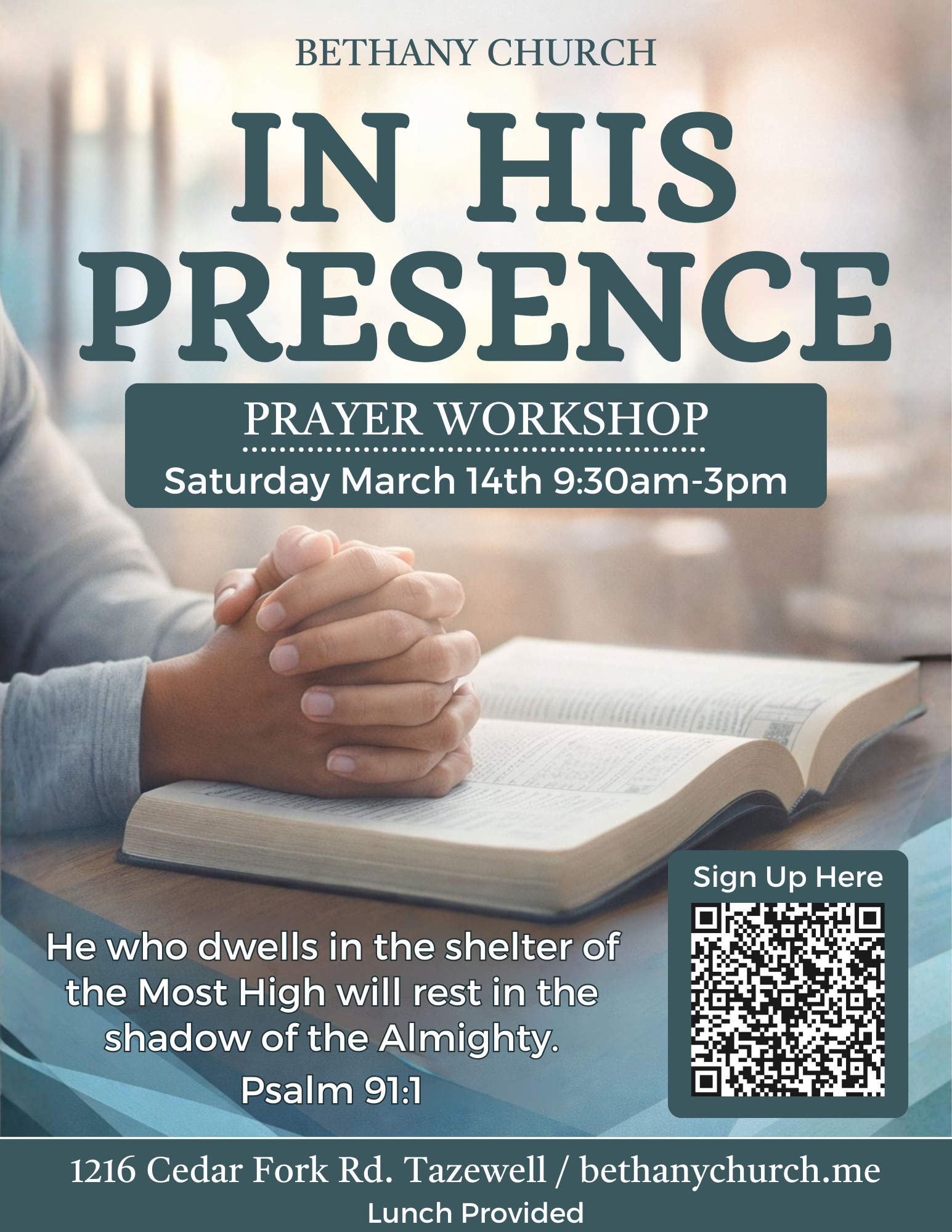 Join us at Bethany Church for a one day prayer workshop inviting you into stillness, scripture, and prayer. Expect to be refreshed, renewed, and re-anchored in God. Lunch will be provided.
